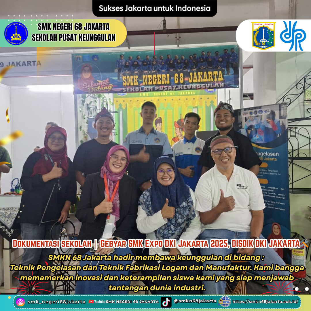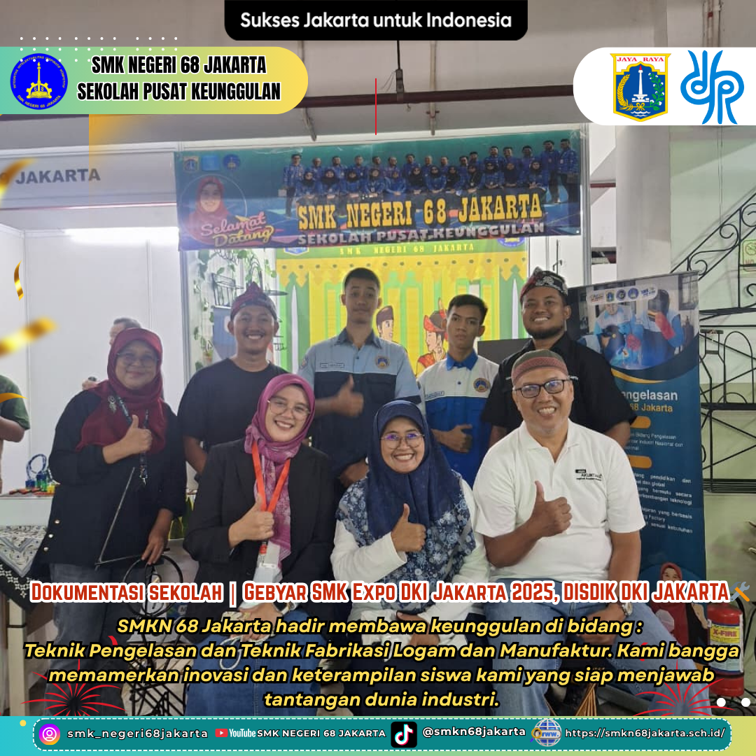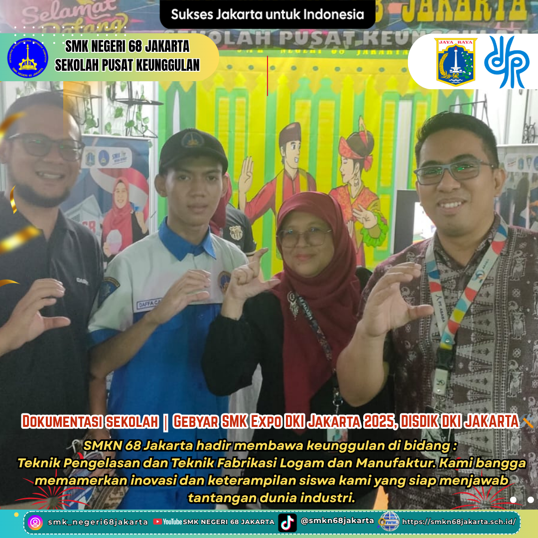 Kepala Sekolah SMKN 68 Jakarta menyatakan, "Partisipasi kami di Gebyar SMK Expo adalah wujud nyata komitmen sekolah dalam mencetak tenaga kerja terampil dan kompeten. Kami bangga melihat inovasi dan keterampilan siswa-siswi kami yang siap menjawab tantangan dunia industri. Melalui keahlian seperti Teknik Pengelasan dan Fabrikasi Logam, kami yakin vokasi kuat akan menguatkan Indonesia!"